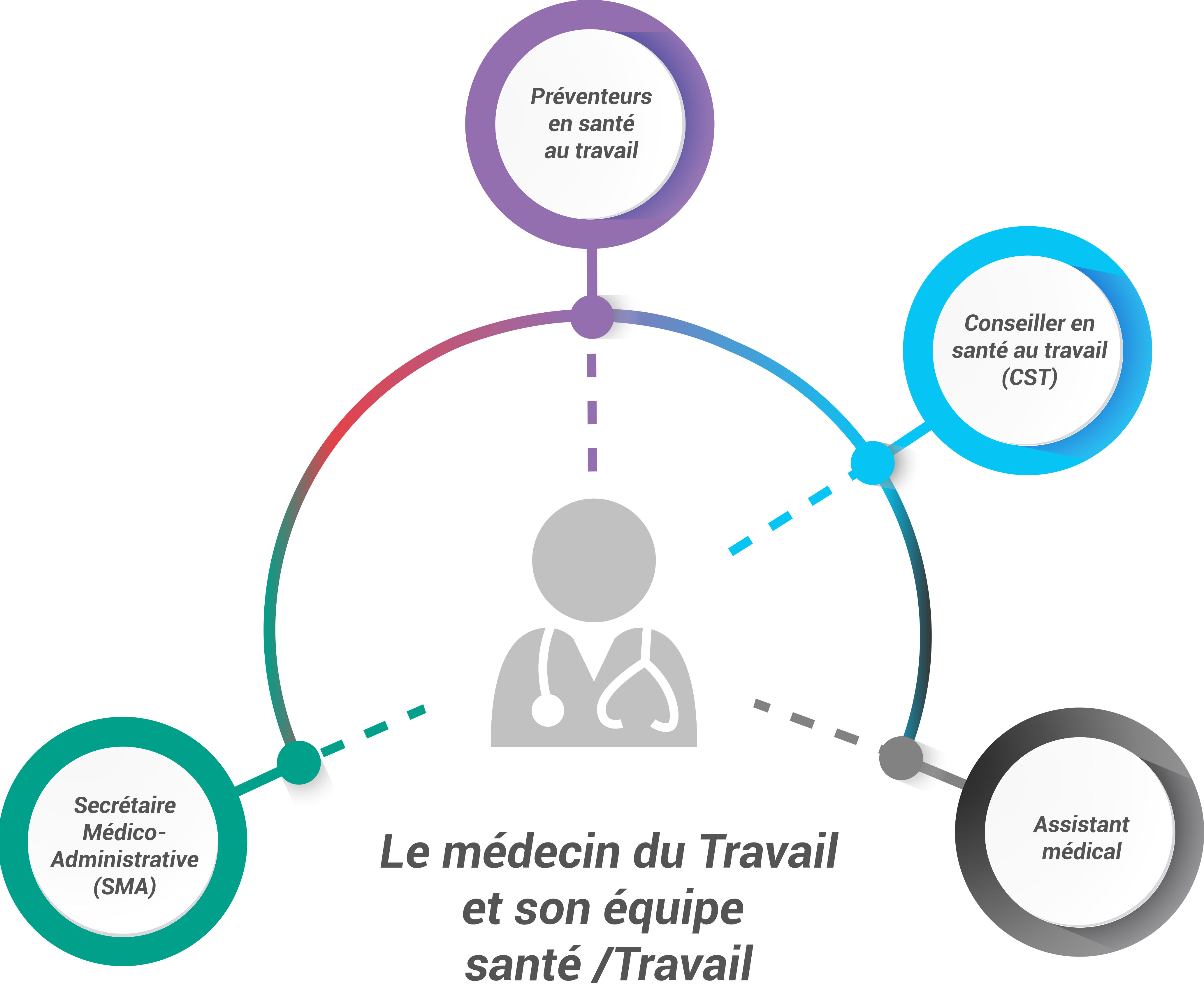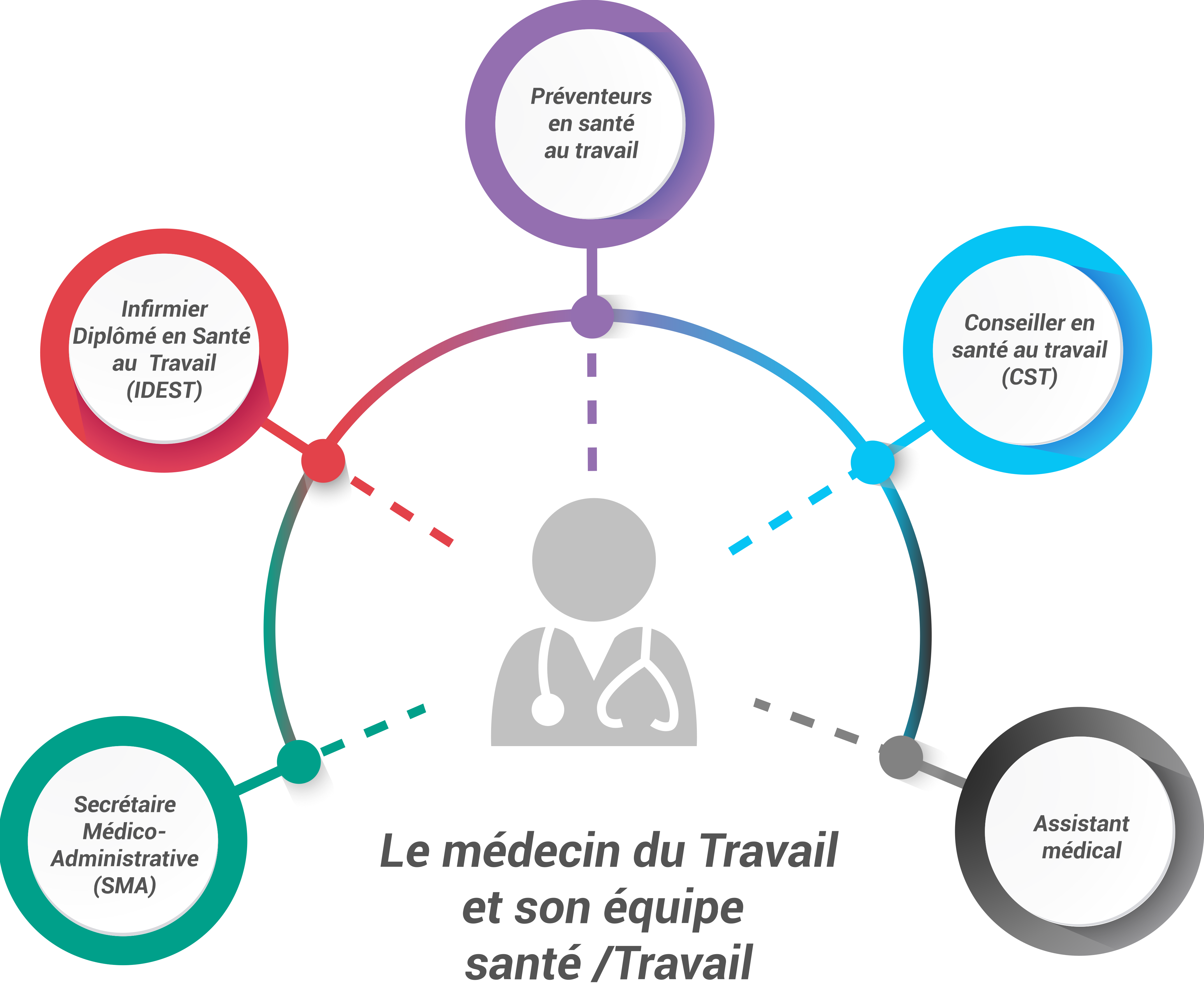 La réglementation fait apparaître la notion de pluridisciplinarité. Les services de médecine du travail deviennent des services de santé au travail. Ce n’est plus le médecin seul qui se charge de votre santé au travail mais toute une équipe aux compétences diverses afin de répondre au mieux aux besoins évoluant du milieu professionnel.